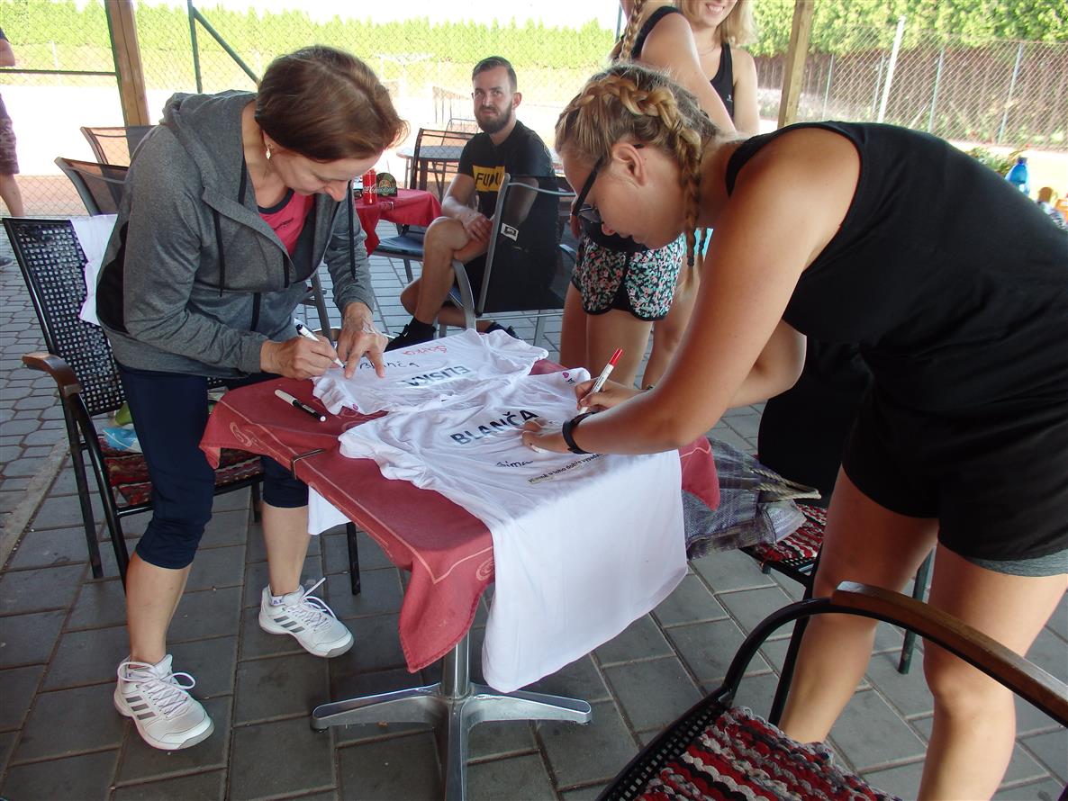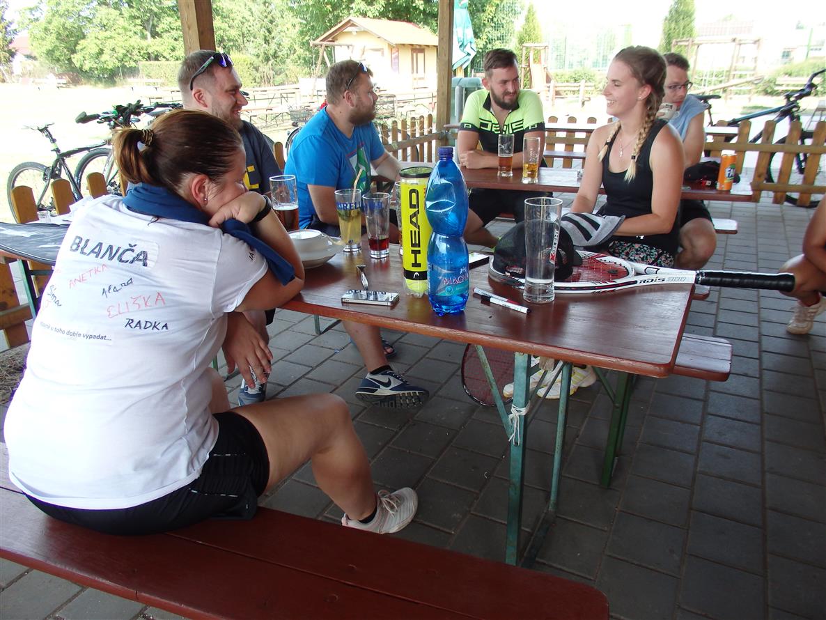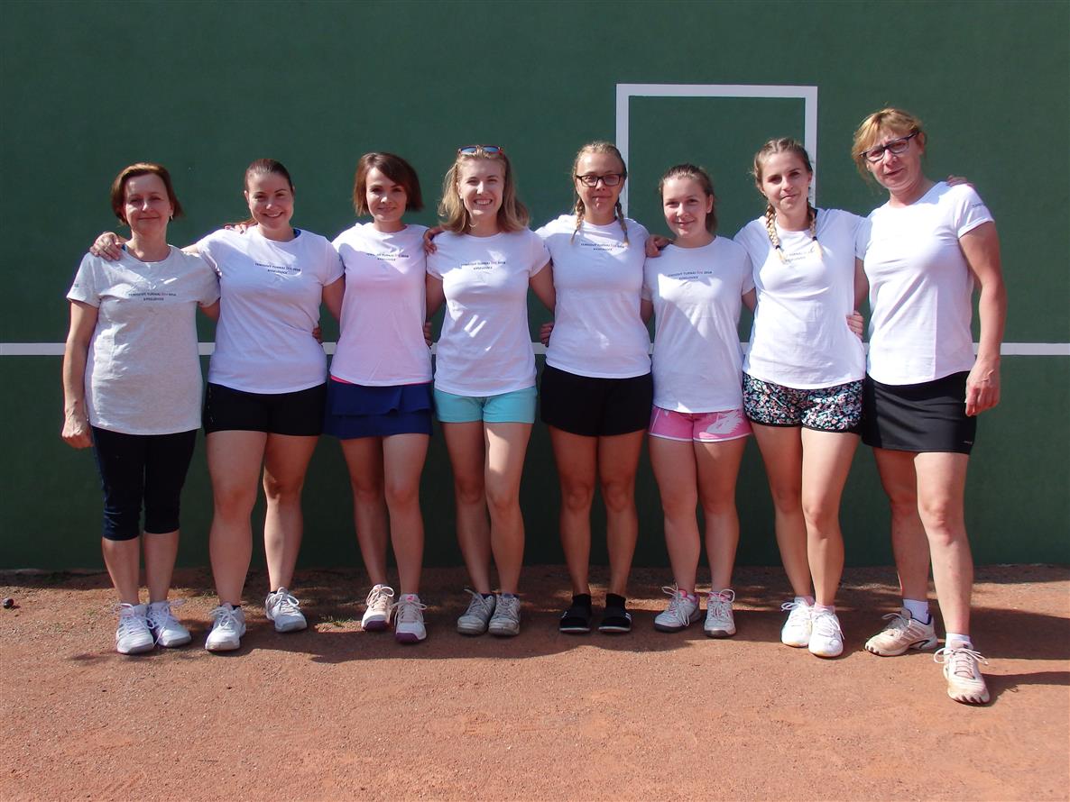 Přes nabité prázdninové víkendy jsme konečně vybraly termín dalšího ročníku tenisového turnaje žen, a tak se v sobotu 21. 7. 2018 na hřišti sešlo celkem osm hráček. Rtuť teploměru se letos vyšplhala na 34 stupňů Celsia, což nás ale nezastavilo. Koláče nachystány, kafíčka vypita, dech byl sjednocen zahajovacím kolem štamprlí a kolem 10 hodiny jsme se teda pustily do tenisu. Letošní novinkou byla společná trička se jmény hráček, aby měly na letošní ročník hezkou památku. Hrály jsme stylem hlavně přes síť a jeden set. Na oběd nám kluci připravili vynikající steaky se salátem, po kterých se už nikomu nechtělo zpět na kurt. Nehrající SERVIS zase hráčky zásoboval míchaným nápojem Mojito. Bitvy na kurtech nebraly konce, a tak se až ve večerních hodinách konečně rozhodlo pořadí. 3. místo vybojovala vždy zapálená do hry a lačná po vítězství Šárka Apoleníková, na 2. místě se umístila Radmilka Kroupová a na 1. místě Eliška Říkovská.